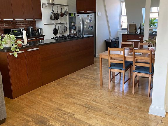 Lovely South End three bedroom penthouse duplex (3rd bedroom is small and better suited as an office), features very spacious living area with lovely wide pine flooring, high ceilings, large windows that get terrific sunlight, plenty of closet space with an extra room for an office and an awesome bathroom with updated features. Amazing private deck off of the living room. Gorgeous kitchen has stainless appliances including dishwasher, beautiful marble counters, and great cabinet space. Heat and hot water are included. Convenient to transportation and a quick walk to Downtown Boston and all of the South End's best restaurants and shopping!! This place is an absolute must-see!