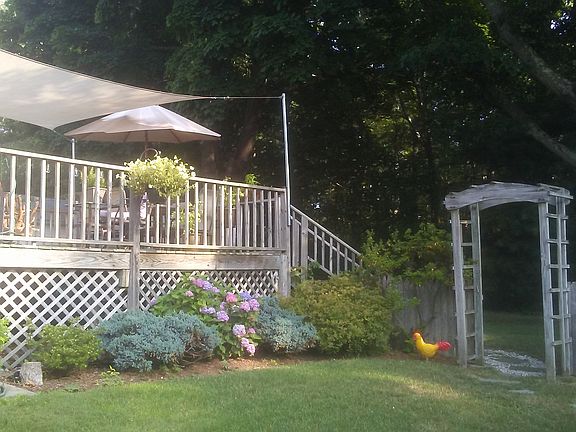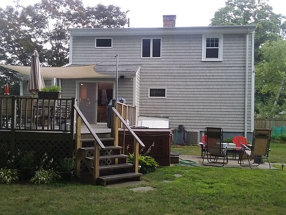 Location, Location Location! Inviting 3 bedroom Cape. Features front to back living room with wood stove, hardwood floors, high efficiency furnace with central air conditioning, stainless appliances, recent roof, hot tub, jet tub, large deck, mature meticulously maintained landscaping, PRIVATE lot, detached garage and partially finished basement (great rec room) with shower and sink bath. Lovely area... Great Schools, walking distance to Bristol Community College, tennis courts! A must see, larger than appears! YARD IS FABULOUS! This home is move in condition needs nothing well maintained!