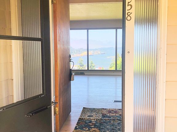 Views, Views, Views walls of windows take in Coos Bay Views to the North Bend Bridge & beyond from both levels. Watch harbor lights & bay activity & the ships role in.Features hardwood floors, fresh paint & most newer floor coverings. 4 bdrms, 2 bath w/family room or possible extended living.Separate entrance & kitchen setup.Level back yard for garden or play.Off street parking.Property line below wood fence.Listing Broker is Trustee/financial interest.