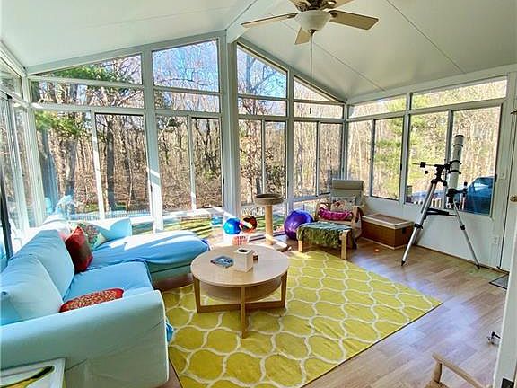 MOVE RIGHT IN! This charming cape has so much space and has been beautifully maintained. These homeowners are meticulous. All of the big ticket items have been updated in the last 5-6 years. Heating system, roof, Mass Save has come in and replaced any windows that were not energy efficient and added insulation. The open floor plan is perfect for entertaining and the large sunroom offers so much natural light. The master bedroom is huge and has enough space for large furniture and a sitting area. The basement has been well designed with an added living space that includes a writing for Professional Home entertainment; and office space with a full sized window that offers wonderful natural lighting. There is also a mudroom in the area where the walk out door is to the backyard. The backyard offers ample space for anything you might want to do and is lower than the front of the house offering wonderful privacy. You won't want to miss out on this beautiful home!