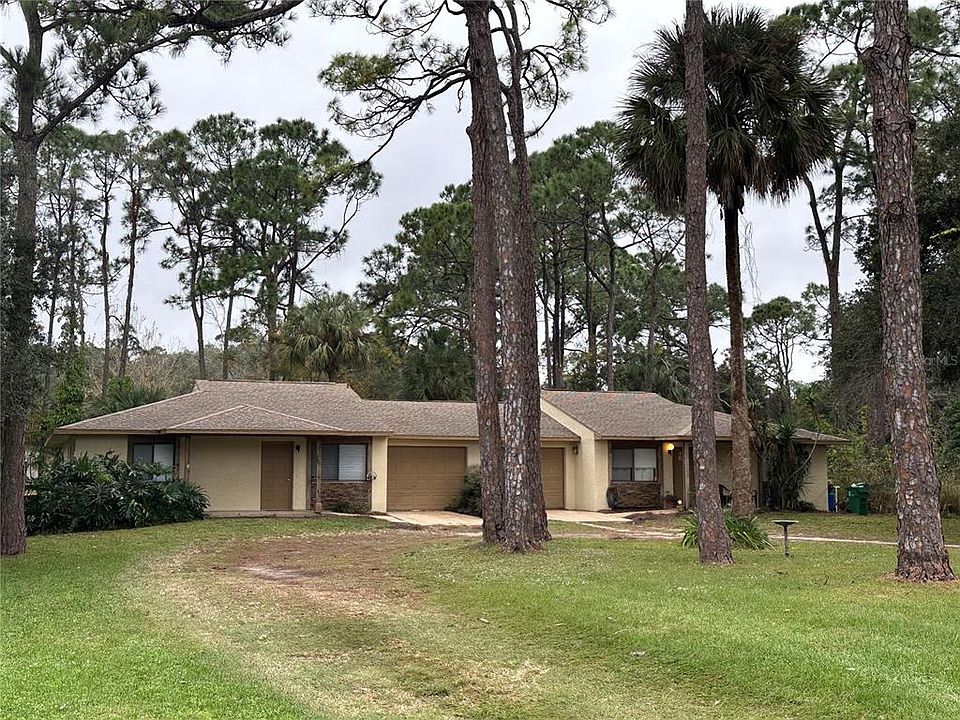 This full duplex is located in a convenient location in Titusville. Easy access to Kennedy Space Center and Highway 50 to Orlando. Two units - each unit is a 2 bedroom, 1 bath, with indoor laundry room and an attached 1 car garage. Property is .51 Acre. Wood tile through the units. Well Water and Septic. No water bills No association fees. Investment property or buy to live in one side and have rental income from the other side.. Current tenants are month to month.