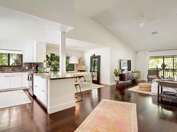 Modern Luxury 3BD/2BA Townhouse in Midtown Boca Raton! Featuring hardwood floors, designer furnishings, fresh contemporary finishes, vaulted ceilings, impact windows and a 1 car garage. Sunlight filters through every room in this END CORNER residence surrounded by tropical trees. Gorgeous white kitchen offers center island for entertaining, new stainless steel appliances & timeless quartzite countertops. Primary suite offers vaulted ceilings, beautifully remodeled spa like bath with dual vanity, new soaking tub, & custom closet cabinets. Split floor plan, 3rd bedroom is a home office. Tranquil panoramic green views. Huge patio. Highly desirable & conveniently located neighborhood next to Town Center Mall, Publix Restaurant Plaza & Swim & Racket Center. 2 Heated Pools. FURNISHED O