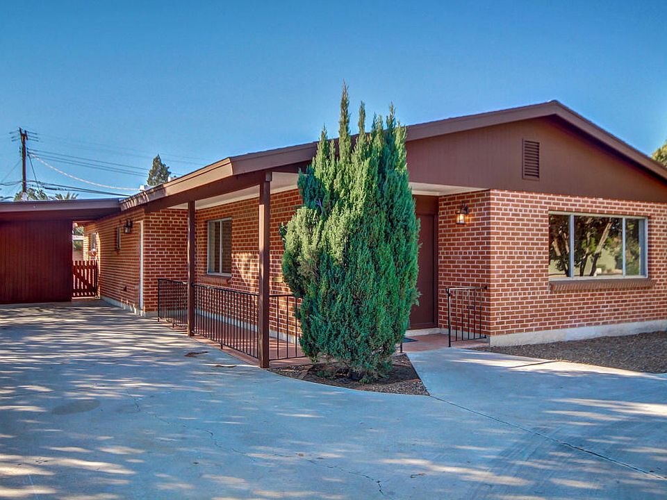 Amazing 3 bed 2 bath brick home with large family room! Spacious floor plan with new wood looking ceramic tile flooring & new baseboard throughout. New carpet in all bedrooms. Large sunken living room featuring prominent rock fireplace, perfect for entertaining & cozy nights by the fire. Kitchen features brand new cabinets, built in pantry offering plenty of storage, new stunning quartz counter-tops with under-mount sink & new stainless steel appliances. New Brushed Nickel light fixtures, plumbing fixtures, ceiling fans & door hardware throughout. Both bathrooms have new vanity cabinets, new mirrors & new tile surrounds with deco accents. Beautiful front yard with deco rock, circular tree lined driveway, covered wrap-around patio & lush vegetation. This one is a must see! Agent/Owner.