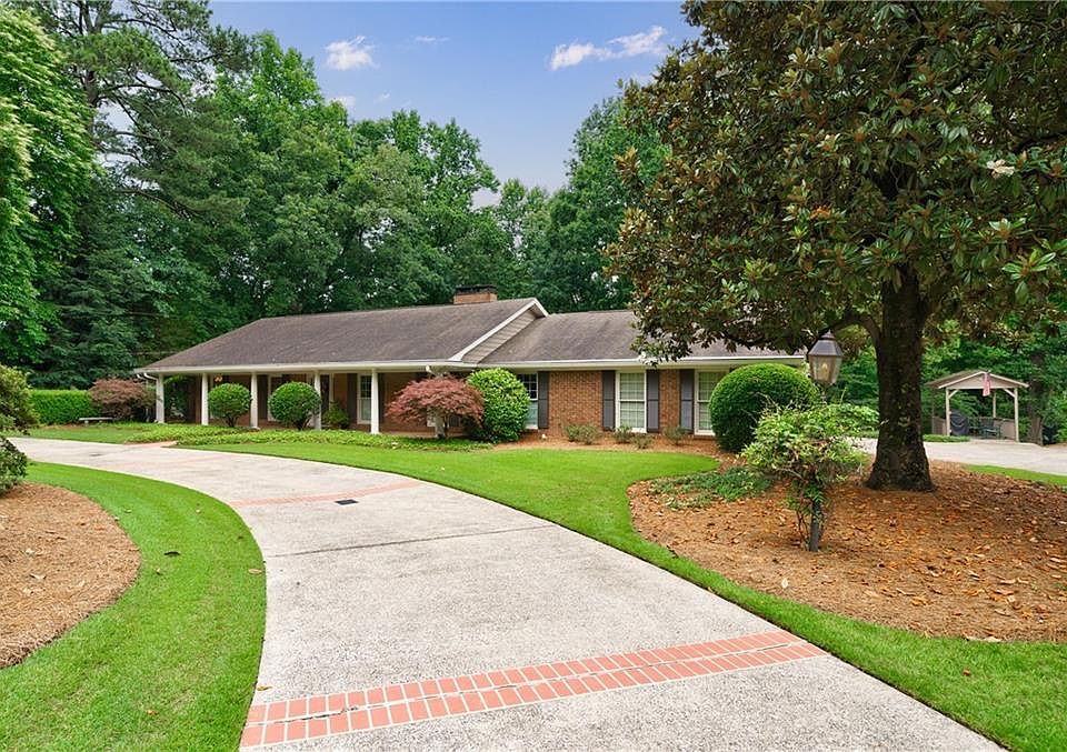 Rare find in coveted neighborhood in Sandy Springs. This charming ranch style home sits on over an acre, circular drive and ample parking. A private fenced backyard, gunite saltwater heated pool and flagstone decking, perfect for entertaining with friends and family. Located just inside the Perimeter and north of Chastain with close proximity to shopping, dining, entertaining and easy access to highways. Minutes from Heards Ferry Elementary, and Holy Innocents' Episcopal private school. This stepless ranch has 3158 square feet on the main floor that includes 4 bedrooms and 3 full baths and a partially finished basement with an additional 2950 square feet. Much love and care have gone into this pristine home. Throughout the main level are beautifully stained hardwood floors including all bedrooms with tile flooring in bathrooms. The family room has vaulted ceilings with beautiful wood beams, cypress wood bookshelves, brick accent wall with large fireplace (gas logs) and on opposite side a wall of windows leading out to screened porch (with flag stone flooring) that overlooks the pool and private backyard area. It's such a cozy feeling much like a mountain retreat but in the heart of Sandy Springs. The kitchen has light colored custom built cabinetry, granite countertops, tile backsplash and a double sink. High end appliances that include stainless double ovens and separate microwave, 5 burner gas cooktop, warming drawer, dishwasher and custom built refrigerator. Kitchen has an eat in area with bay window and view to backyard. A laundry room with utility sink is tucked off kitchen area. A two car garage is off the kitchen with a covered area for grill. Located at opposite end of home are three sizable bedrooms, two full baths (one is a renovated jack-n-jill with double sinks and tub shower combo) and a master suite at the end of hallway with renovated bathroom that has heated flooring, white vanity and granite top, soaking tub and separate walk in shower and a walk in closet with custom shelving. Lower level has large living space that could be game/media room with another large gas burning fireplace and sliding doors leading out to walk out stone patio and wood arbor. There is a full bath, exercise room, cedar closet, workshop, craft room and storage area that could have lots of possibilities. There is a generator that services the whole house and will come in when electricity/power is lost.