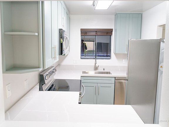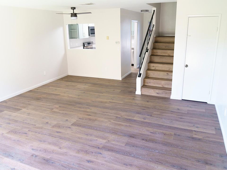 Large two story condo with dual master suites available now! Completely renovated, new hard floors and all new stainless steel appliances. Both bedrooms have walk-in closets and their own bathroom, with an addition bathroom in the downstairs common area (2 1/2 baths total). Central A/C and Heating. Two deeded parking spaces (one covered) directly behind the unit. In-unit washer and dryer hookups in unit, with laundry / mud room. Large condominium - 1248 square feet, not including back laundry / mud room. Complex has a swimming pool. Lots of guest parking on street. Unfurnished. Water & sewer paid. Located in one of the finest, most central areas of La Mesa -- across the street from grocery shopping and dining, a short walk to scenic Lake Murray for trails, picnics, and fishing. Minutes to Mission Trails Golf Course & Regional Park, featuring fishing, hiking and biking trails. Conveniently located near public transportation, shopping centers, restaurants, and freeways, yet in an uncongested neighborhood. Minutes away from SDSU, Grossmont College, and just blocks from multiple freeways. Also very close to Cowles Mountain, Grossmont Shopping Center, Grossmont Hospital and Sharp Health Center, Costco, fine dining and much more! Only 15 minutes from downtown San Diego, the beach, and military bases. The location can't be beat! Water, sewer, HOA paid. No smoking. Two parking spaces (one covered) directly behind unit. 12 month lease.