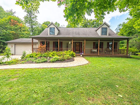 Price reduced and just updated kitchen with granite counter tops, new sink and faucet! The kitchen also provides a large refrigerator, double oven, microwave and a new dishwasher. Discover the tranquil country living with this charming cape cod home, nestled on over 8 acres of secluded woodland. This cozy home boasts 3 beds, 2.5 baths, and is adorned with rustic charm. Primary suite and laundry room are located on main floor. Large windows flood the home with natural light, offering picturesque views of the surrounding nature. The full basement has ample storage and is partially finished with a custom media room, which includes a rustic bar with stools, as well as a versatile flex room for additional space. Outdoors, unwind on the porch swing while enjoying the sights and sounds of wildlife. In the summer, keep an eye out for deer hiding their fawns in the woods. The well-stocked pond is home to hybrid bluegill, largemouth bass, channel catfish, and perch, while the property itself boasts unique trees such as common persimmon, pawpaw, chestnut, Asian pear, and fringe trees, along with standard apple and pear trees. For the outdoor enthusiasts, there are three riding trails perfect for walking or ATV. A 36x40 pole barn has electric, water source, and the16x40 lean-to provide ample space for projects and storage. The workshop is equipped with a propane heater and the open bay areas are heated with a wood burning stove. The back yard provides a built-in fire pit on the stamped back patio; a large fenced in area approximately 140 ft x 130 ft with a 11'x11' cement pad for a dog kennel. Additional features include a Generac generator, buried 500-gallon propane tank, and an updated HVAC unit with additional heat pump installed in 2017. It is conveniently located near Mad River Ski Lodge, within 10 minutes to Honda East Liberty and 15 minutes to Honda Marysville Plant.