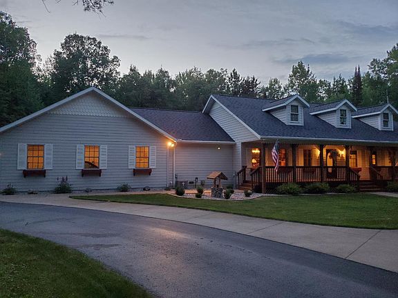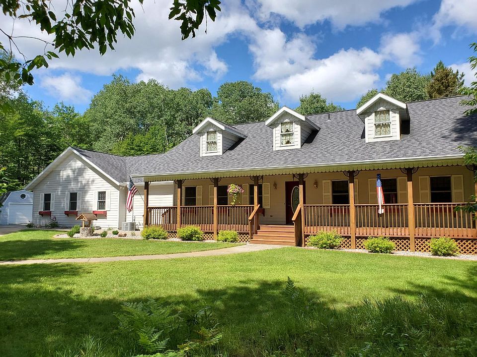 You are finished looking, this 7+ acre property blends local amenities of town a short drive away with privacy and serenity of the North Woods. When you walk into this spacious ranch-style you see a meticulous and beautiful living space with cathedral celings, floor-to-ceiling windows, high-end details and the best in kitchen appliances. First-floor laundry and master suite, walk-in closets, and guests have their own suite including bedrooms and family room downstairs with a full-bath. The yard is landscaped with underground sprinklers and includes gardens to be a wildlife paradise, enjoy the views from your covered deck. There is a deep 2-car attached garage and a 30x30 garage with extra storage above. Generator, water-conditioning system, security system, A/C, allergy-free (no pets have lived here), VIASAT internet, leaf guard gutters, AprilAir, high-end appliances, Carrier furnace, 50-gal. water heater, the perks list goes on. Must see!