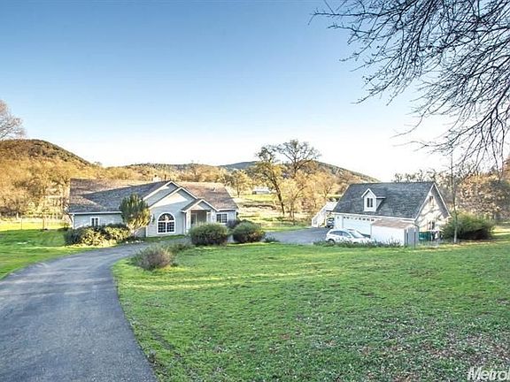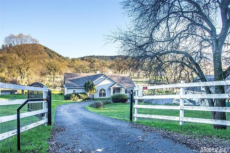 Country custom home rests on a gated 5 acre parcel with detached 3-car garage, seasonal stream and horse pastures! Entertainer's delight kitchen w/Cherry cabinets, granite counters & newer appliances w/dining bar & nook plus access to the deck. Family room w/vaulted ceiling, dual sided fireplace, plus a formal dining room. Enjoy the peace & quiet from the rear deck overlooking the pasture & stream. Det. 3-car garage has a large bonus room above. Plenty of space for horses, a pool, boat or RV!