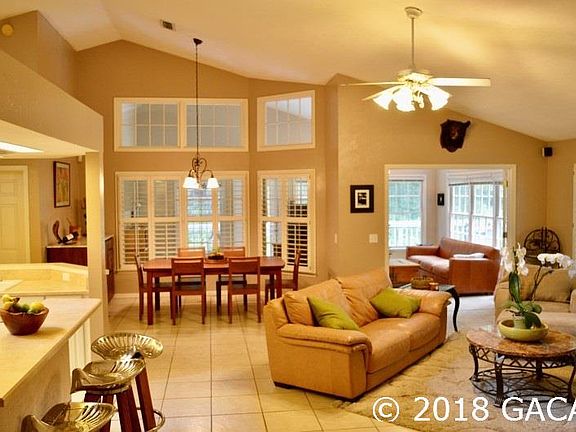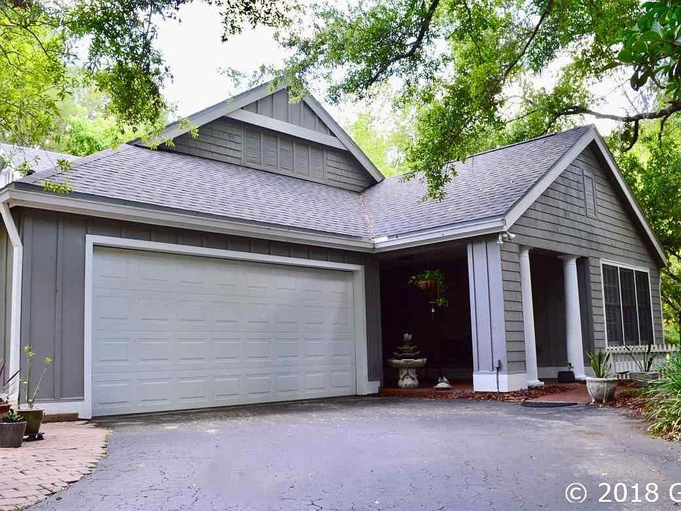 Best view in Grahams Mill. Enter the home through a welcoming foyer that opens to a large tiled great room with a tall vaulted ceiling. The great room is perfect for entertaining. Master bedroom and bath are also vaulted, with a remodeled master bath and separate his/hers walk in closets. Split bed plan with updated guest bath. New roof installed 2018. New garage door and wrap around back deck rebuilt in 2017. Step outside and hit the great paved and off road trails right from the front or back door. Only five minutes to downtown Haile and the restaurants and shops it offers. One of two homes that sit on the edge of large natural landscape buffer.