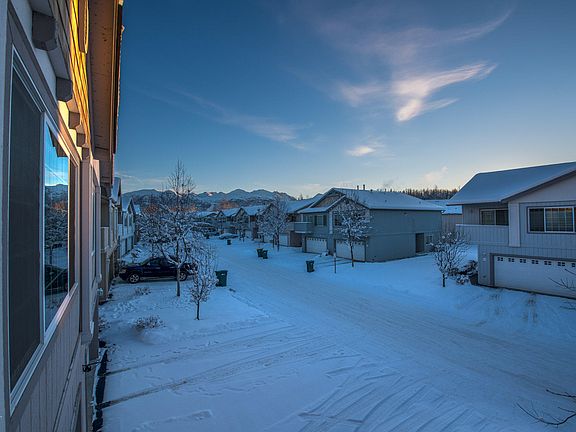 Move-in ready 1,443 sf townhouse-style condo located in quiet neighborhood near Russian Jack Springs Park. Immaculately clean with new paint and newer carpet throughout. 2004 construction, 3 BR, 2BA, FP, 2 car heated garage, built-in microwave, new LG washer and dryer installed in 2014, new Kenmore refrigerator installed in 2015, small patio and view of the Chugach Mountains. Large master bedroom with walk-in closet. High ceilings in living room with lots of light from a southern exposure. One block to bus line.
