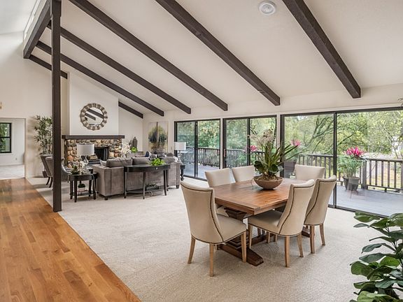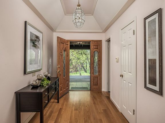 Nestled among five acres of oak, buckeye and pine trees, this gorgeous estate has so much to offer! Nearly 4,000 square feet of spacious living include 5 bedrooms, 3.5 bathrooms, a large bonus room and an office. Light abounds with large windows throughout, as well as a skylight and solar tube. Beautiful random plank white oak adorns the main level floors. Entertain in style in the living and dining rooms, where a river rock fireplace takes center stage. The wet bar is great for stirring up fun! Or relax in the open plan kitchen and family room, where a buck stove fireplace makes for cozy winter nights. Chefs will not be disappointed! The kitchen boasts GE Profile double oven and warming drawer, a Monogram induction stove top, luxurious granite slab counter tops, a center island, eat-in dining area, cupboards with pull-out shelves and extra storage in the adorable butlers pantry. A huge game/bonus room is fun for family and guests alike. An additional office has many options for use. With five fenced acres of land, which include cross fencing and a seasonal creek, there is ample room for kids to play or horses to roam. The rear yard backs to Miners Ravine, creating even more spaciousness and privacy. Other features include a quiet cul de sac location, whole-house fan, abundant storage, and private gated entry. Car enthusiasts will love the six-car garage!Enjoy a country setting while conveniently close to shops, schools and amenities. Trail rides and other leisure activities are just minutes away at nearby Folsom Lake recreation area. Families with children will be happy to learn that the home is located in the award-winning Eureka Union and Granite Bay High School districts. This home personifies the motto, Live and play in Granite Bay come see for yourself!