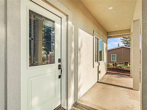 Looking for that home that captures the look and feel of Paradise? Quality of construction and attention to detail are obvious while walking around this 2024 Martin Construction home. 1620 Sq. Ft. of living space, split floor plan, OWNED solar, Insulated interior walls, Insulated garage, covered porch ,and 360 sq. ft. of covered patio/outdoor living space. Entering the home guests and residents can remove their coats and take advantage of the custom built in lockers lining the entryway. LVP flooring, knotty Alder, and oil rubbed bronze finish package blend perfectly together to create an attractive and comfortable main living space. The kitchen is stunning! Aside from aesthetics the functional layout has been finished with knotty alder cabinetry, custom tile back splash, high end GE stainless steel appliances, and quartz counters. This home was built and designed with the consumer/family in mind. The sought after split floor plan creates a sense of privacy. Insulated interior walls takes that privacy to the next level. An additional feature not commonly found is each bedroom has it's own air return to ensure a steady temperature while the doors are closed. Each hallway is complete with linen storage. The laundry room and hallway closet that will act as your media hub lead the way to the master Suite. Natural light, dual closets, and custom tile work create a space that will will make every morning feel like a luxury vacation. This home will certainly check your boxes.