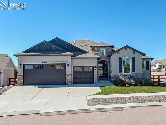 This newer home is ideally located on a corner lot in Bradley Ranch, and better yet, it’s decked out with all the thoughtful upgrades that will have you sighing, “It’s good to be home.” The 3,720 square-foot ranch home features every important comfort, including a 5-piece master bath with a jetted tub, ceiling fans in every bedroom, quartz counters in the bathrooms, a gas fireplace, and of course, mountain views. Kick back or cook up a storm in the open living space, including the upgraded gourmet kitchen with high-end finishes, premium soft-close cabinetry, quartz countertops, pantry, large island, and beautiful tile backsplash. Curl up by the gas fireplace in chilly months, or let your socializing spill onto the huge 28’ X 12’ covered back patio when the Colorado weather is really showing off. The backyard is fenced and professionally landscaped. The whole-house humidifier, high efficiency furnace and water heater, sump pump, and central A/C will give you peace of mind and comfort all year. Spread out in five bedrooms and three bathrooms and never worry about storage thanks to the large unfinished basement storage room and the finished space below the stairs. The 3-car garage is equipped with its own storage system and bike hangers so there’s space for all of your gear and decor. Between the whole-house sound system with built-in equipment and the huge granite basement wet bar, you’re ready to relax or entertain in any part of the home. From the master bedroom’s crown molding to the basement’s fabulous wet bar, this home is move-in ready and still beautifully new. See it before it’s gone!