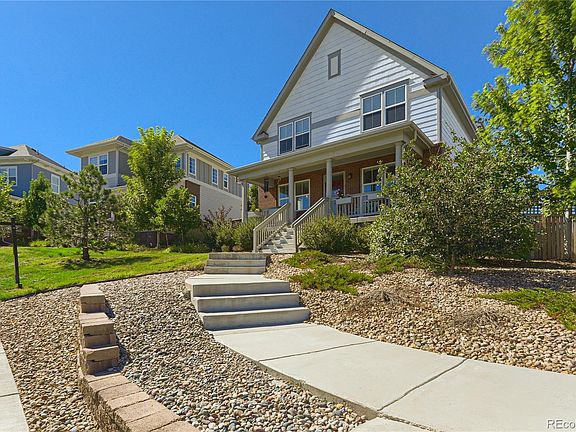 A prime location in Hyland Village of Westminster. It is a great community offering a fun, friendly & relaxing lifestyle. Special features in this home are views of mountains, a main floor office, a dining room, butler coffee station leading into a spacious kitchen with a large island that provides space for seating, quartz counters, and a breakfast nook. The kitchen has high-end stainless steel appliances, a double oven, a gas stove with five burners, and a built-in desk—an upper-level laundry room with a barn door, sink, and cabinets. The primary suite is spacious with a linen closet and walk-in closet and has a fabulous bathroom with a freestanding soaking tub, tile floors, and a walk-in shower with frameless doors. The upper level has two additional bedrooms with a private bathroom.  The basement is fully finished with a private bedroom and full bathroom, a family/media room with surround sound, and a spacious flex area.  Thrive Home Builders are well known for their energy efficiency, LEED Certified that provides clean indoor air, ample natural light, and safe building materials to ensure comfort and lower utility bills. Tesla Solar Panel system that is paid in full.  Leviton Smart Switches, motorized Hunter Douglas Powerview smart Shades, dual Navien tankless water heaters, Bowers & Wilkins Atmos surround sound in basement & Ethernet wiring in most rooms. Upgraded, oversized 2.5-car garage. Nearby shopping, dining, entertainment & walking distance to farmers market, open space, and bike trail system. The home sits on an elevated prime lot and is one of the best homes in the community. The house overlooks the swimming pool and playground. The backyard has mature landscaping, a raised garden bed & a stamped concrete patio. Another side yard can be designated for putting green or cornhole game/ play equipment or a place for pets. Low HOA dues include snow removal, ground maintenance, clubhouse, pool & playgrounds.