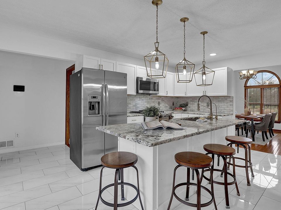 Welcome home to this gorgeous ranch nestled on nearly 5 acres, complete with a long, scenic driveway that leads you to a welcoming front porch perfect for relaxing evenings. Step inside the foyer and be greeted by soaring ceilings and a warm, light-filled living area accented by a striking fireplace.