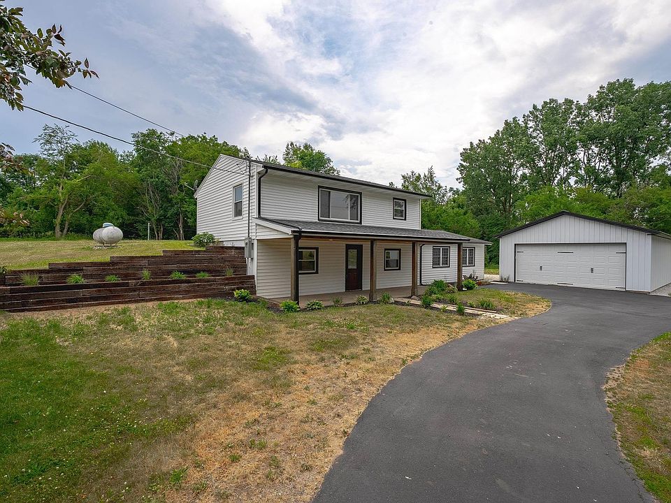 ***Due to an Accepted Offer OPEN HOUSE has been canceled.*** Now’s your chance for country living not far from all the amenities the Kosciusko County lakes region has to offer! This completely remodeled home sits on almost an acre with the added bonus of backing up to many acres of undeveloped land. The semi-circle drive creates ample parking for family and friends and makes for easy access onto the property. The attractive front porch welcomes you and the pop of color from the landscaping adds curb appeal. Step inside to the brightly lit living room featuring its beamed ceiling. There is plenty of space for your family and friends to enjoy each other’s company or gather for a meal in the dining room. The impressive kitchen has expansive countertops, under cabinet lighting, a beautiful tiled backsplash as well as all new stainless steel appliances. You’ll love all the storage space available with the abundance of cabinets! You even have additional space in the pantry as well as a convenient work space. A main level half bathroom is readily available for guests. Retire upstairs to the master bedroom with picturesque views from the large windows. Double closets provide extra storage space and the attached bathroom features a soaker tub with tiled surround and separate shower. Two more bedrooms and a full bathroom with beautiful tiled surround and a jetted tub complete the top floor. The new deck, as well as the private concrete patio with fire pit provide a nice space for hours of relaxing! Don’t forget about your oversized outbuilding perfect for all your tools, vehicles, and hobbies - plus you’re not too far from James Lake and Tippecanoe if fishing and boating are calling your name!