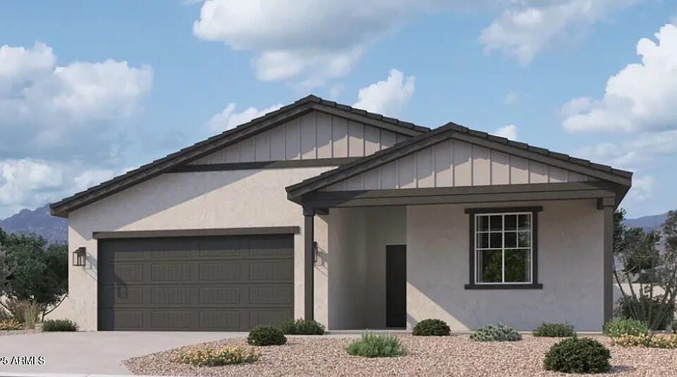 NEW Construction! This beautiful 3 bedroom, 2 bathroom with den has an open and spacious open floor plan with indoor/outdoor living concept. This lovely home features 9-foot ceilings, up to date 6x24 tile flooring in all the right areas, large pantry, The outside has a great curb appeal with included desert landscape. There is a separate carpeted den area to be utilized as needed. Stunning 4 panel glass sliding glass that leads you out to your covered patio providing an inviting indoor/outdoor living space. This home features our Harmony design package that includes quartz kitchen counter tops, with white shaker cabinets, white tile kitchen backsplash, an undermount single bowl kitchen sink, stainless-steel appliances, and much more. The primary bedroom has a large walk-in closet, double sinks, a large walk-in shower, and an additional linen closet for extra storage. Great location close to dining, freeways, parks, and entertainment!