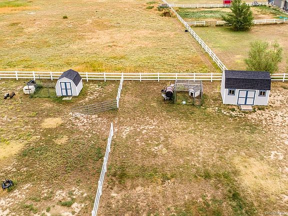 3 acres fully fenced and cross fenced for your animals. Meticulously maintained with granite counter tops and back splash installed just this month!! Beautiful back deck surrounded by trees for privacy and also a covered front porch. Outbuilding + 2 storage sheds. No homes to the north so take in the beautiful Colorado plains from this home.