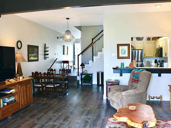 CUTE as a button and super neat-n-clean! If you want a condo that have Lake views from the back deck and mountain views from the front, close to national forest access....this is it. Wood laminate flooring throughout and all the appliances are new including the hot water system. The kitchen has been updated and includes a cute pantry.. Master on the main and a wood burning fireplace to snuggle up to. during those cold winter nights. Upstairs is another bedroom with a built in desk area, it's own full bath and a HUGE closet and more storage. This area could also be used as den or office. The back deck is made of a Trex like material and has fantastic views of the lake. Relax and enjoy an evening under the stars with our wonderful warm summer evenings. This is such a beautiful condo and so well cared for you'll want to make sure it is on your list....I love this one! FYI...This has already been updated with new windows and the radon mitigation system installed for peace of mind.