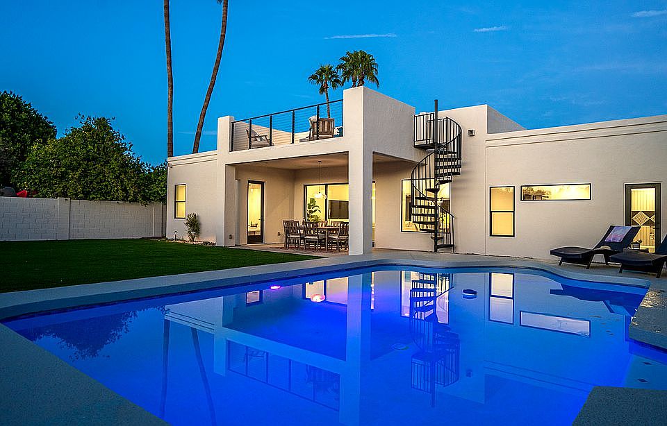 Check every box on your wishlist with this ground up rebuild! All new everything! This house has it all with 4 bedrooms, 4 full baths, Great Room layout and multiple living areas. Features include soaring ceilings, stunning views of Camelback, a roof top lounge, and an unbeatable location. Everything is new including the roof, plumbing, electrical, HVAC, windows, and water heater! Professionally designed and curated by MB Design, with black and white finishes and hints of brushed gold throughout. Live the lifestyle of your dreams on this quiet cul-de-sac street with direct access to the canal and Scottsdale Greenbelt. Leave your car in the garage (with electric charger hookups) and ride your bike into Downtown Scottsdale in under 10 minutes!