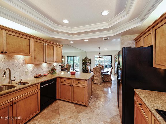 Rarely available, 3 bedroom, 2.5 bathroom townhouse located in the beautiful seaside town of Ocean Ridge. Upgraded kitchen with granite countertops, wood cabinetry, a tray ceiling and high hat lighting. Large dining area and family room that looks out to the huge deck with newer Trex decking, perfect for entertaining! Travertine flooring downstairs and a wood staircase leading up to the 3 spacious bedroom upstairs. Under the stairs storage closet. Large Master bedroom suite with vaulted ceilings, a walk in closet and a huge master bathroom with dual sinks, a spa tub and separate shower. There is a second deck/balcony off of the Master with views of the Pool, canal & Palm trees. All this in a beautiful small gated community with beach access and a boat slip!