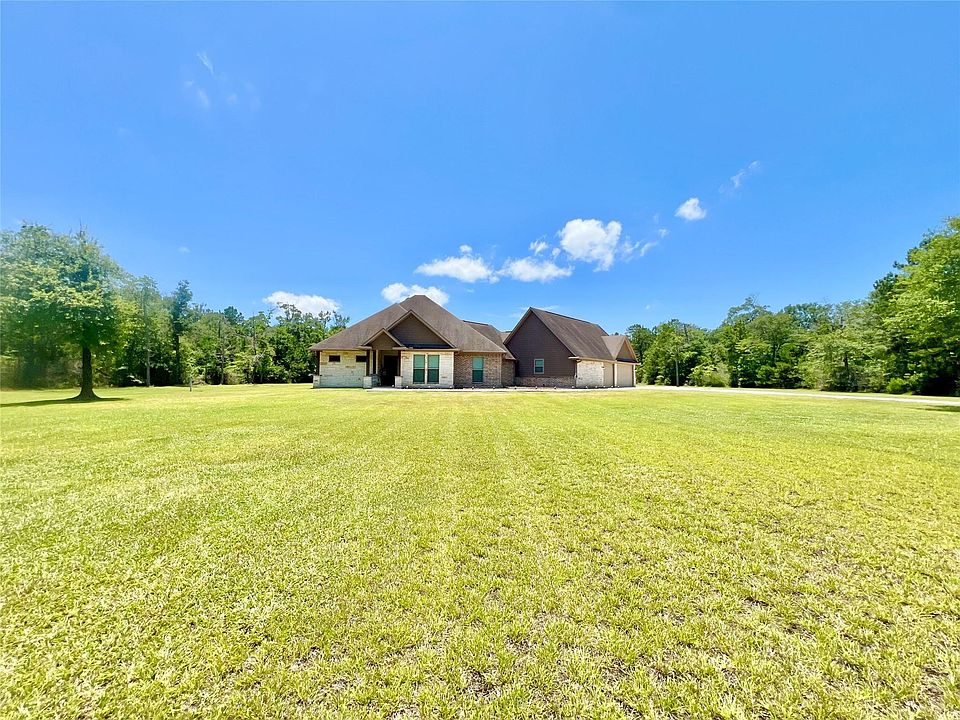 This custom-built home sits on 5.6 peaceful acres and offers charm, luxury, and thoughtful design. It features four spacious bedrooms—three downstairs and one upstairs, perfect for guests or entertainment. The entire home is handicap accessible! The sunlit primary suite includes French doors leading to a large covered patio. In the bathroom boasts a soaking tub, walk-in shower, and a dream closet with a granite-topped island!! Perfect for organization and style! The open-concept kitchen and living room boast granite countertops, a large island, and a wood-burning fireplace. Wood tile flows through the main areas, with carpet in bedrooms and stairs for comfort. Additional highlights include a mudroom, walk-in pantry, oversized laundry room with sink, cabinets, storage closet, and half bath. The 3-car garage offers ample space. Outside, enjoy a pond with fountain, perfect for swimming or relaxing. This immaculate property is full of character and built for comfort and entertaining.