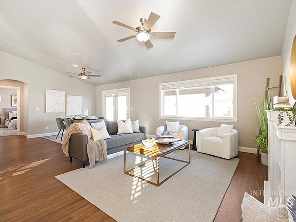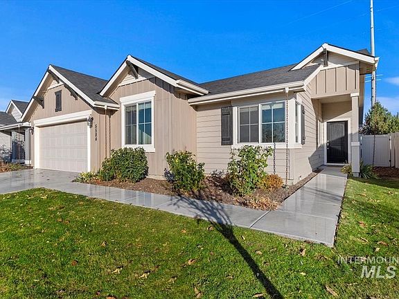 Single level home in the sought after Oaks community! Fantastic location close to grocery, shopping and even across the street from community pool and park. This 1578 sqft home has an open great room, vaulted ceilings and popular floor plan. Kitchen boasts granite countertops, stainless steel appliances, pantry, and a dining nook. Master suite has granite countertops, large tiled shower, soaker tub and walk in closet! Step out to the generous back yard and enjoy the covered patio in any season. The Oaks offers amazing amenities like pools, parks, walking paths to ponds, sport courts, and playgrounds! 2 car garage and south facing driveway that dries fast in the winter months. This North Meridian home offers great living for your first home, next home or even investment property!