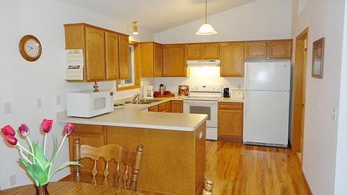 Charming walk-out split with large two story addition. Features: Vaulted ceilings, hardwood floors, Walk-in closets in both main floor bedrooms, huge LL family room w/ gas fireplace and deck w/ views!