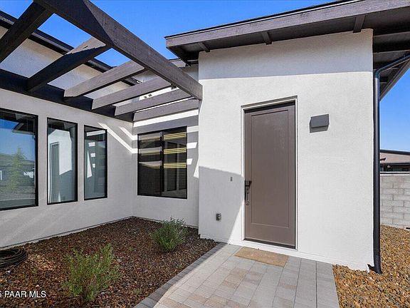 Experience refined living in this stunning, 3-bed 3-bath home featuring both the primary bedroom as well as an ensuite guest bedroom in this better than new Mandalay home, including BRAND NEW TILE FLOORS. Perfectly situated in the highly sought-after Jasper community a short walk to the prestigious J Club. Enjoy panoramic views of Mingus Mountain, Glassford Hill, and the San Francisco Peaks from a residence that effortlessly blends style, comfort, and sustainability. Step inside to discover a spacious open concept layout, where the great room welcomes you with a striking stacked stone linear gas fireplace, a true centerpiece to the room featuring a designer kitchen with quartz countertops, center island with pendant lighting & breakfast bar, walk-in pantry, and stainless steel appliances,