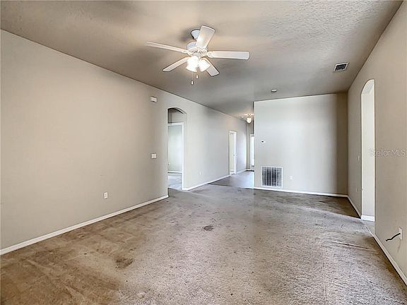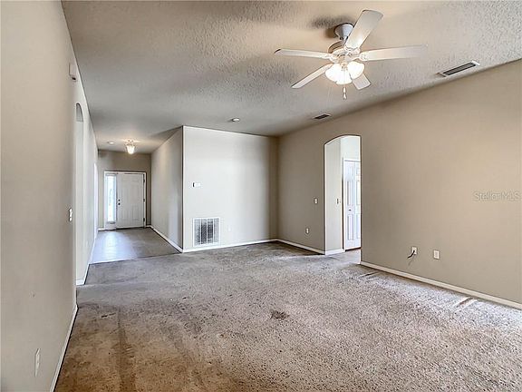 Welcome to this 4 bedroom/2 bathroom home in the lovely neighborhood of Forest Ridge. The spacious, open living room greets you upon entry and flows effortlessly into the separate, large, open dining room where you can enjoy a large family meal at the table or grab a quick snack at the breakfast bar, in the adjoining kitchen. The beautifully open kitchen features a stainless steel sink, sleek dark appliances, cabinets with ample storage, closet pantry, access to the separate laundry room. It even has eat-in space in front of a large side window, which envelopes the space in natural light. Sliding glass doors in the dining room (or second living area if you prefer) lead out to the expansive back yard. All bedrooms are located on the right side of the home yet retain their privacy. The Master Bedroom is located to the rear of the home and features a walk-in closet. The Master Bath features a large garden tub with separate walk in shower and plenty of counter space. This community is conveniently located near all the amazing attractions, shopping, and dining that central Florida has to offer. (Carpets have been cleaned and paint touched up after photos were taken)