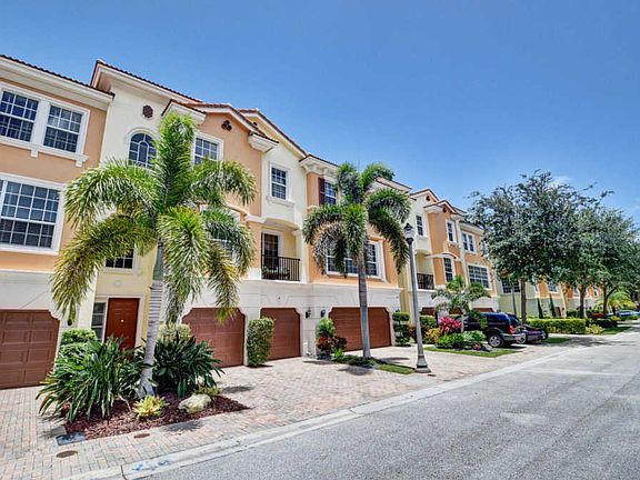 Gorgeous 3 story townhome offering 3 bedrooms, 2 full & 2 half baths plus a separate office and bonus room. Lots of natural light. Features include 2 story foyer, a beautiful private lanai, 2 balconies, gourmet kitchen, large walk-in closets, master bath with separate shower and spa tub, coffered ceilings in the master suite, crown molding, central vacuum system, 9+ ft ceilings throughout. Some additional features include whole house generator, elevator, new shear blinds, two zone AC system, full impact windows and doors, tankless hot water heater. All this is located in the beautifully landscaped and desirable Trieste community offering guarded gate security, resort style pool, and within short drive to beaches, shops & restaurants of Mizner Park and Atlantic Avenue in Delray.