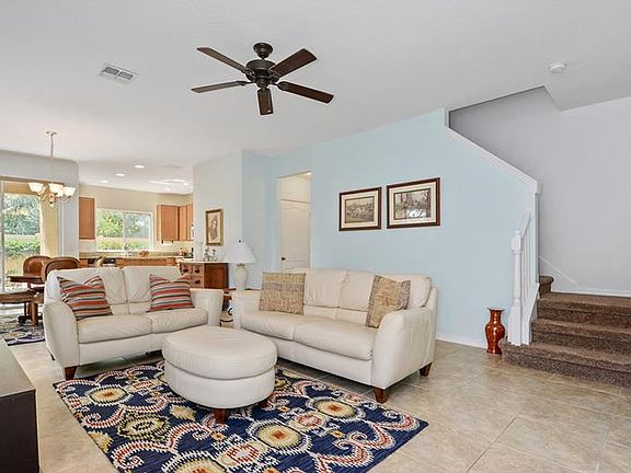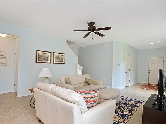 Nestled in the quiet, gated community of Provenance, this townhome is move-in ready! When you walk up to the home you are greeted with mature landscaping and a front porch. Walk through the front door into a foyer with your garage access to the right and a staircase just beyond that, also on the right. Walk through the end of the foyer into a great room, made up of your family room, dining room, and kitchen. This great room is spacious, making it the perfect place for family gatherings. The kitchen boasts 42 inch cabinetry, stainless appliances, closet pantry, and island. The dining area is a good size with upgraded light fixture and sliding door access to the covered patio. Upstairs is a small loft, surrounded by your master suite, two secondary bedrooms and second bathroom, and your laundry room. The master is a really good size with large window, ceiling fan, and walk-in closet. The master bath features dual sinks, garden tub, and shower. The two secondary bedrooms have large closets, windows letting in tons of natural lighting, and ceiling fans. The secondary bathroom has a single sink and a shower/tub combo. The entire home boasts neutral paint and flooring, with tile on the first floor and carpet on the second. With the Cross Seminole Trails located just steps outside of the community, you can enjoy a day of walking or biking and take advantage of the various trail heads offering pavilions, a playground, restrooms and water fountains!