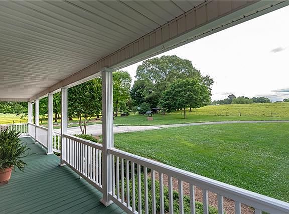 Relax in the sunroom with bead board ceiling and tile floors, on the covered front deck or on the enclosed rear deck with Easy Breeze Vinyl Pane windows. The kitchen has hardwood floors, granite counter tops, a coffee bar with lots of storage, bay window and a pantry with pull out shelves. The great room has a vaulted ceiling with wood beams, a wood stove fireplace with a stainless steel lining in the chimney, a mantel and hearth along with built in shelves. The master bathroom was updated with a tile shower with insets and a bench, double sink vanity, cabinets behind mirrors and tile floor. There is plenty of storage in the basement along with a finished den and bathroom (accessed through unheated sqft and not included in the total heated sqft), and a single car garage. The 2 car carport has epoxy flooring and storage above and even more storage in the detached garage. More amenities include a tractor shed with 2 bays and overhang, storage building and swingset all on 20 acres!