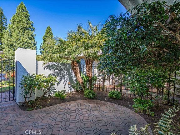 Incredible opportunity in the luxurious Grand Finale “110” neighborhood of the Laguna Woods senior community. This spacious single-level CASA PALMA two-bedroom, two-bathroom floorplan boasts over 2100 sq. ft. of living space – one of the largest floorplans in the community. With excellent curb appeal, this residence is situated in a wonderful private location on a quiet single-loaded street far from busy roads and noisy highways. The small private gated front courtyard is perfect for outdoor relaxation or cozy social gatherings. Beyond the oversized double door front entry lies the residence’s formal foyer. The massive living room space allows for a variety of configurations of large furnishings and boasts dramatic 11’ ceilings and a lovely wood-burning gas fireplace backed by a graceful floor-to-ceiling stacked stone wall. The adjacent dining room easily accommodates an oversized dining table. The large kitchen area has ample storage and counter space and includes an island, breakfast nook and computer workstation area with ample shelving. The huge common area comprising the living room, dining room and kitchen creates a unique and ideal space with great flow for large-scale entertaining. The expansive master bedroom suite features a walk-in closet and huge bathroom with dual sinks, vanity area and separate tub and shower. This well-maintained home has mostly original features and is ready for your customized remodeling ideas. The rear patio is easily accessed via the living room and dining area and extends the length of the residence, offering a panoramic view of the neighborhood, trees and hills. The attached two-car garage has additional storage cabinets and offers convenient direct access to the house via the separate laundry room. Driveway parking is available for two additional vehicles. Gas line is available in this section of Laguna Woods. Do not miss this wonderful home!
