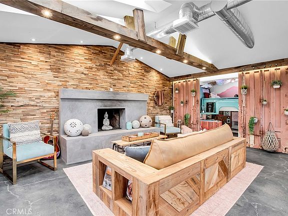 Indulge in luxurious outdoor living with a spacious patio featuring a lap pool and spa, ideal for refreshing dips on warm summer days or unwinding beneath the stars. Attached to the patio is a charming 70's trailer, offering two additional beds for guests or extra space to unwind.