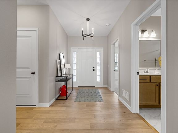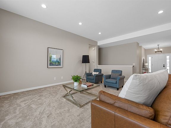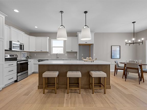Move in ready! All the benefits of in-town living with county taxes! This oversized "Ashton" condo features 9 and 10' ceilings throughout. Custom cabinetry with soft close features, hardwood throughout the great room, nook, and kitchen, and upgraded plumbing fixtures. Off the dining you can enjoy your covered deck and overlook the scenic views of the established trees and green space all around. The primary bathroom features dual sinks, a tiled shower and glass door, and plenty of space in the oversized walk in closet. The lower level features daylight windows and offer an additional bed, bath, and rec. room. Lawncare is a breeze with a irrigation system, low maintenance landscaping, and convenient HOA in place for lawn care and snow removal. Contact agents for full details.10-year Skogman Homes warranty applies.