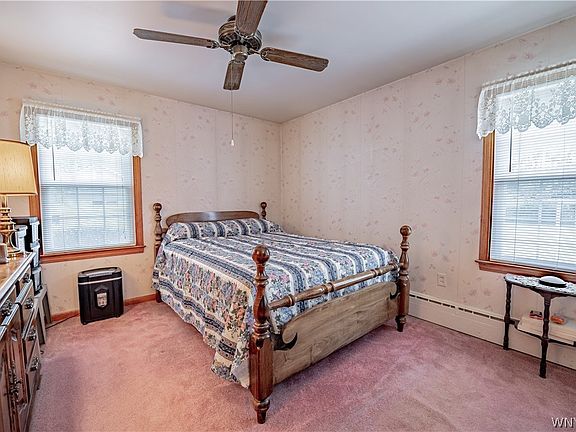 Beautiful brick Cape Cod nicely situated on half acre parcel. 3 BR (1 down, 2 up), 1 full bath (1st floor). Hardwood floors throughout except for kitchen and bath (under carpet, nice condition). Large entry separates house and garage (could also be first floor laundry). Private covered side porch off living room is secluded and relaxing. Full basement offers utilities and plenty of storage. Also, 3 car attached garage with workshop & generator hookup. Garage & porch roof 2014, house roof 2011, boiler 2008, HWT 2005. Newfane Schools. 2022-11-10