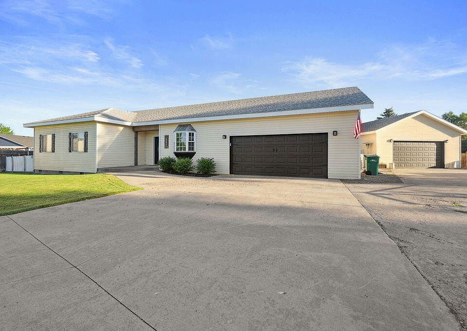 Welcome to your dream home! This spacious 3-bedroom, 2-bathroom gem boasts 2108 sqft of living space, perfect for comfortable living and entertaining. The open floor plan features a large living room with vaulted ceilings, creating an airy and inviting atmosphere. Enjoy meals in the formal dining area or the cozy informal dining space connected to the family room and kitchen. The home is beautifully decorated with designer paint colors throughout. The huge primary bedroom offers a serene retreat with a walk-in closet, double sink vanity, soaking tub, step-in shower, and a separate toilet closet. Step out onto the deck and enjoy your private backyard oasis. The landscaped and fenced yard is ideal for outdoor activities and relaxation. In addition to the attached 2-car garage, a detached 26x40 shop awaits, fully insulated and equipped with a pellet stove. The shop also includes a utility sink, plumbed-in toilet, work benches, cabinets for ample storage, and an automatic garage opener.