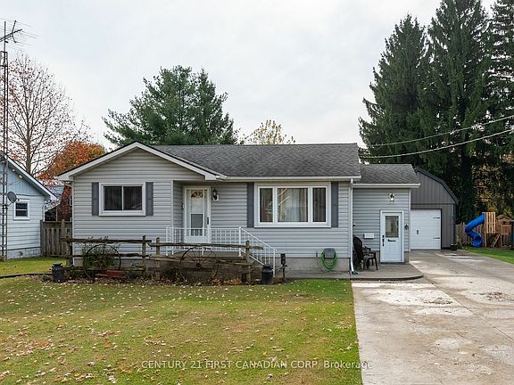 Welcome to 55867 3rd Street in beautiful Straffordville! This charming home features an updated kitchen that flows seamlessly into a spacious dining room, offering bright, open views of the backyard. The large primary bedroom boasts direct access to a rear deck, perfect for relaxing under the pergola or enjoying the hot tub. The main floor also includes a large living room and a well-appointed 4-piece bathroom. Venture downstairs to find two additional bedrooms, a cozy sitting area, and plenty of storage. The property is completed by a large stamped concrete driveway with parking for at least six vehicles, a new detatched garage with a loft for extra storage, and a 10 by 20 garden shed. Don't miss the inviting fire pit area, perfect for gatherings and enjoying evenings outdoors! Updates include new wiring, an upgraded electrical panel, plumbing, furnace, A/C, and 50 year shingles with a transferrable warranty. If you're looking for a home that's move-in ready, and in a quiet neighbourhood, this is a must see.