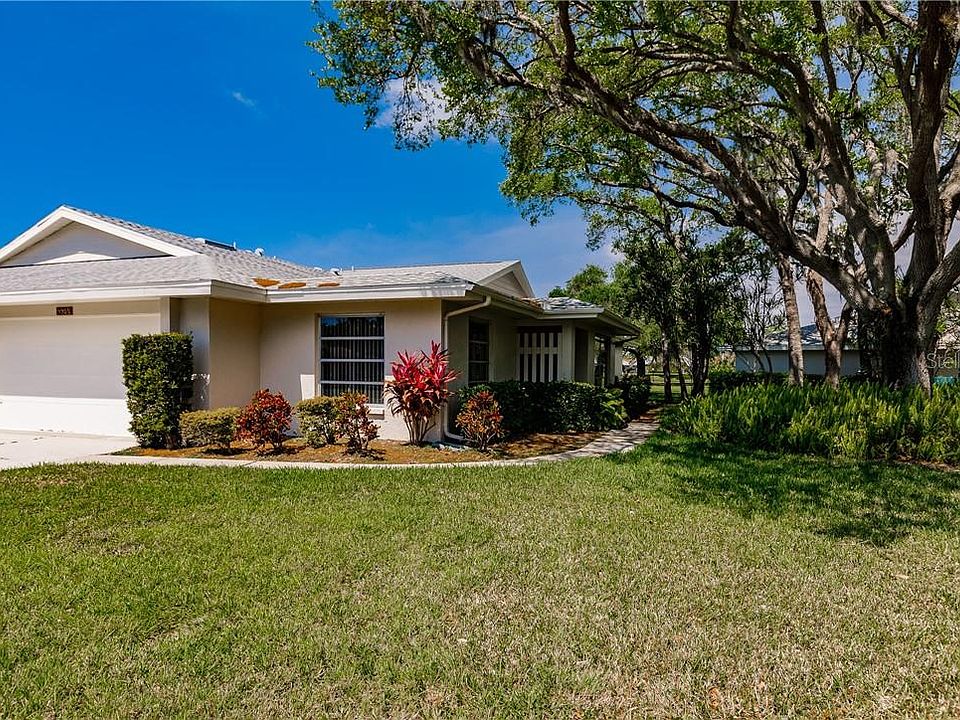 Spacious Villa with pond view in quiet Center Gate Village community. Open floorplan can be used either as 2 bedrooms plus a den or 3 bedrooms. Kitchen has room for a breakfast table and there is a counter that is open to the family room. The family room and Bedroom 1 have peaceful views of the pond to the rear. The lanai offers a quiet space with water views for bird watchers! The family room has a vaulted ceiling, adding to the spacious feeling. The owner had a little table and chairs by the front door and was her favorite spot for having breakfast while bird-watching! The large laundry room has cabinets and a work space counter as well as a laundry tub. Two-car attached garage for convenience! This active community has a community pool, and all the neighbors are friendly and helpful. It's located south of Bee Ridge Road, with quick access to Publix, Home Depot, Walmart, Doctors Hospital, and lots of restaurants and businesses. A 20 minute drive west will take you to Siesta Key, and going about 5 minutes east will give you access to I-75. Downtown Sarasota is about a 20 minute drive NW. If you're looking for a quiet little niche that has easy access to everything you want to do on a weekly basis, this is a villa you should see!
