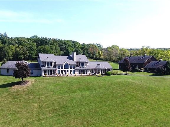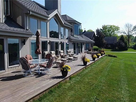 THE SKY IS THE NEIGHBORHOOD at this 50-acre hunters dream property with views extending beyond the iconic Keuka bluff providing a unique getaway for wine country living in the Finger Lakes. The perfectly constructed home is a sanctuary of serenity and privacy with lake views from every room. A massive great room is the heart of this home defined by a dual-sided fireplace separating the living and dining areas while a sweeping wall of floor to ceiling windows and sliding glass doors fills the space with natural lighting & spectacular views. Radiant heat throughout, Gunite indoor pool & spa, 3 bay garage, and impressive outbuilding. Turnkey hunting grounds complete with tree stands, stocked pond, open fields and woods. Truly a phenomenal property in the most spectacular of settings.
