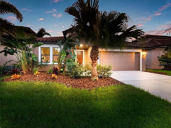 One or more photo(s) has been virtually staged. It's a rare find to locate a stylish four-bedroom home that shows and feels like brand new construction in an upscale and established gated neighborhood. Ashton Palms is an intimate community with just 32 units and offers the privacy and quality lifestyle that you've worked hard for and deserve. This Boca Raton II floorplan is a fabulous open concept where the kitchen, dining area, and great room overlook a lovely pond. There is a generous back yard with an extended covered lanai, gorgeous water view, enough room for a pool, and the back yard can also be fenced. The "heart" of this home is the kitchen and proudly displays 42' stylish maple espresso cabinets with beautiful granite countertops, tile backsplash, an elegant pot filler over range, stainless appliances, and an island that makes a gorgeous statement and is perfect for entertaining. The spacious owner's suite has a lovely water view, a large walk-in closet, a luxurious master bath with decorative tiles, a garden tub, and a spacious walk-in shower. Throughout the home, there are 20" floor tiles and upgraded like-new carpet in the bedrooms. The welcoming foyer leading right into the direct water views and creates a feeling of nature and peace throughout the home. Ashton Palms is a short drive to Siesta Key and considered a hidden gem by those that know about this secure neighborhood. Just a short drive to Siesta Key beaches and on the doorsteps of all the conveniences that make the Florida lifestyle so desirable. Come and take a look today either in person or virtually. It is uncommon to find a home in a truly established neighborhood that still shows like brand new construction in such a desirable location. The time to start enjoying sun-filled mornings overlooking the glistening pond and breezy evenings filled with cotton-candy sunset skies is now. This home is an exceptional find and stands out in a class of its own. This home is currently vacant and easy to show.