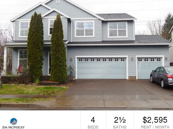 Gorgeous Four Bedroom Tualatin Home with Three Car Garage! - Spacious open floor plan with 4 bedrooms, plus office/den, plus family room, plus loft, and 3 car garage. Over 3000 square feet! Hardwoods on main level, formal living and dining rooms, family room off kitchen with fireplace. Kitchen features hardwood floors, granite counters, nook, and pantry butler bar - perfect for entertaining! Master has double vanity, tub and shower, walk-in closet. Utility room with washer/dryer hook-ups, large loft for office/den/play area. Fenced backyard, walking distance to elementary school, and just minutes to Meridian Park Hospital, shopping, and I-5. Forced air gas heat, gas heated water, electric A/C. Owner may consider one small dog (20 lbs and under); no cats. __________________ Thank you for choosing Jim McNeeley Real Estate & Property Management, Inc.! Completed applications are processed/screened on a first come first served basis; to consider an application complete and begin the screening process, we require a completed application for each adult age 18 and older, screening fee(s) for all applicants, pet/animal screening (if applicable), ID for each applicant, income verification for the household, and an interior viewing of the property. We require you to view the exterior of the property in person before we will schedule a viewing. Renters Insurance is due upon taking possession of the property. Screening Fee: $50 per adult (anyone 18 or older) County: Clackamas Lease Terms: 12 months Date Available for Viewing (subject to change): NOW! Heat: Forced air Gas ; Electric A/C Utilities included in rent: None Utilities paid by tenants: Water/Sewer, Gas (NWN), Electric (PGE), Garbage Appliances: Stainless Refrigerator, Range, Microwave, Dishwasher, and Garbage Disposal Year Built: 2004 Levels: Two Garage: 3-car attached Fenced: Yes Vehicle Restrictions: No boat, trailer or RV without approval. HOA: Yes, this property is in an HOA. Tenants agree to abide by all HOA rules and regulations. School District: Tualatin; interested parties to verify and confirm schools. PET POLICY: One small dog may be considered; subject to approval of the homeowner. Under 20 lbs. No cats. Special Terms: No smoking inside the premises, including the garage, or within 10 feet of the property. Our application process includes, but is not limited to- * Credit, criminal and eviction check for all tenants 18 and older * Rental history verification for all applicants applying * Verifying your combined household income is at minimum three (3) times the rent amount * If pets are allowed and approved by the property owner, the security deposit will be increased by $500 per approved pet. See website for breed restrictions. * Applications will not be processed until applicants view the interior of the home. Properties will not typically be shown until after the availability date. *Please view our application process and criteria before applying: http www.mcneeley.com/application-process INFORMATION NOT GUARANTEED AND SHOULD BE VERIFIED. SQUARE FOOTAGE IS APPROXIMATE & MAY INCLUDE BOTH FINISHED & UNFINISHED AREAS. SCHOOL AVAILABILITY SUBJECT TO CHANGE. ___________________ No Cats Allowed (RLNE4638485)