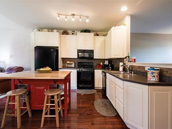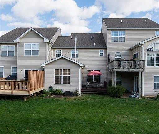This East Penn townhome offers warm decor with beautiful hardwood floors, upgraded cabinets, open concept first floor with gorgeous sunroom, private deck in backyard, and a finished basement. The kitchen boasts hardwood floors, attractive wood cabinets, tile backsplash, and overhead lighting. The kitchen opens into the dining room, living room, and sunroom -- perfect for entertaining! The sunroom is bright with large windows, and cozy with the wood burning fireplace. With three spacious bedrooms and two full bathrooms upstairs, this home offers plenty of space for a family or guests. The finished basement provides a family room area with dry bar and additional unfinished storage space. With three floors of living space, this home is a must-see! Don't miss the neighborhood park and convenient open space directly across from the home!