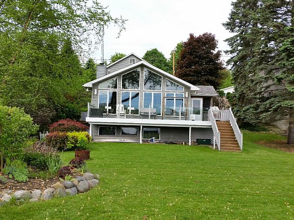 INDIAN LAKE***Elegant Indian Lake home with beautiful landscaping allows you to snuggle in to your park-like setting. The 66' of waterfront with natural shoreline, has a level yard to the home. The Great room with cathedral ceiling and window wall to the lake, also has a gas log fireplace. Perfect for those chilly evenings. The kitchen is efficient with plenty of cabinets and a pantry. The dining area includes a hide away bar cabinet. The main floor full bath is custom finished with marble counter-top. The lower level with daylight windows, has the Master and second bedroom, laundry room and another full bath. Steps and doors to the outside give access for seasonal storage. The garage with covered stairway to home, good protection for rain or cold days. 509A Indian Lake, no public mai All Sport lake, Indian Lake has no public maintained boat launches. Strong lake association with owner participation. Nearby golf, markets, wineries, dining, even Lake Michigan is minutes away!