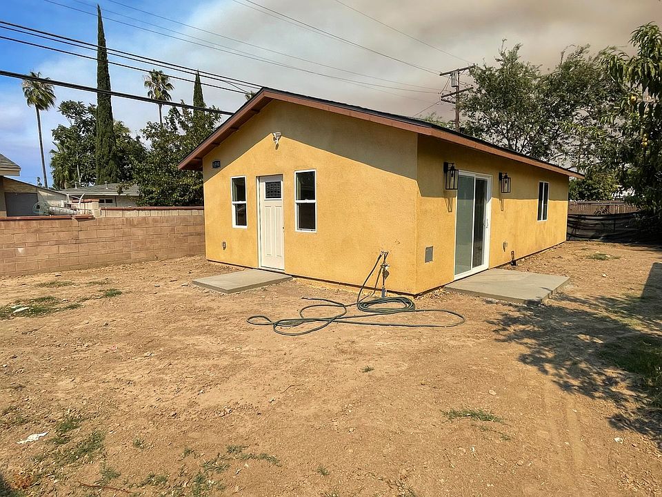 Brand newly constructed 750 square foot detached unit on a spacious corner lot in Riverside. Two bedrooms, one bathroom, a spacious living/dining area, stacked laundry hookups and appliance, split air conditioning heads in each room. Please do not disturb main house tenants. Unit will be available 9/20/24. We are in the process of completing paving and landscaping of the exterior.