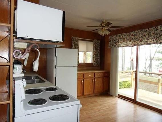 This well maintained two bedroom one full bath year round lake home features: open concept living/dining room, nice kitchen opening to a 15 by 9 foot deck leading to the 60 feet of level lake frontage. The home has air conditioning, a large mudroom/laundry, two spacious bedrooms, and an attached one car garage with workshop area. Enjoy the lovely lot with plenty of garden space and enjoy the beautiful views from your affordable lakeside retreat.