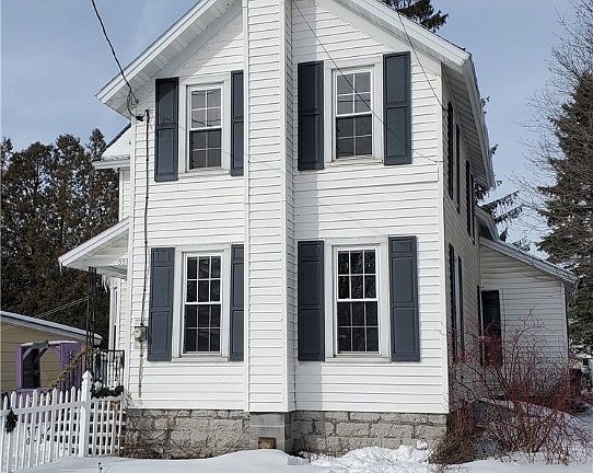 ADORABLE and AFFORDABLE HOME! This two - three bedroom home features a large country kitchen with new stainless steel range, refrigerator and dishwasher. Lots of counter and cupboard space. New pellet stove keeps the whole house warm. Beautiful hardwood flooring throughout the open feel first floor. Possible additional bedroom on first floor. Oversized attached two stall garage with storage and workshop space. Tiled Mudroom. Partially fenced yard with private stamped concrete patio and covered front porch overlook the perennial garden. Located just a few blocks from the school, shopping, post offic, etc. Easy commute to Watertown, Carthage and Ft. Drum. Set up your showing today!