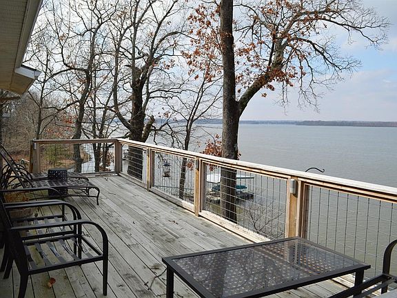 MILLION DOLLAR VIEWS - LAKEFRONT home with 2-slip dock. 3BR, 2BA, 1-car garage with saferoom and work area. Deck across entire lakeside of home wraps around to large sitting area/firepit. 30 X 12 screen porch plus an 8 x 10 shed. New roof & HWH in 2023, New HVAC 2020. Many updates including flooring, walkway to dock, propane for cooking & heat and paint throughout. Mostly furnished. Must see quickly because this one will not last.