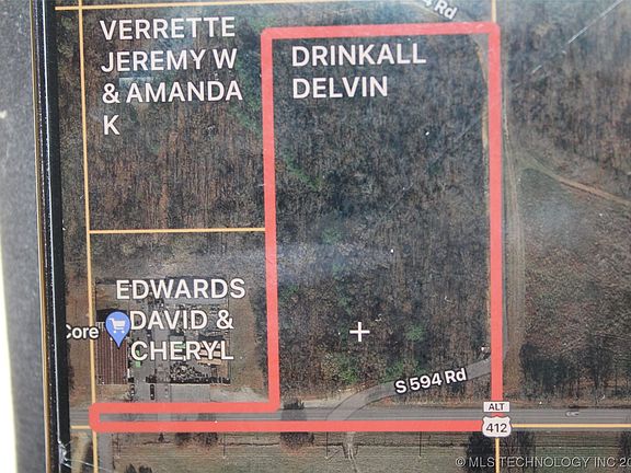 Edge of Town - Beautiful 5-Acres a great place for home, shop and/or business! No restrictions. This property would be good for a multi-residence with several homesite locations that offer privacy, rolling terrain and mature timber and simply beautiful woodlands. Highway frontage visibility for business or a shop. Utilities at street, rural water, electric & fiber optic. Located about 1 mile west of the town of Kansas on Hwy 412 on the north side of road.